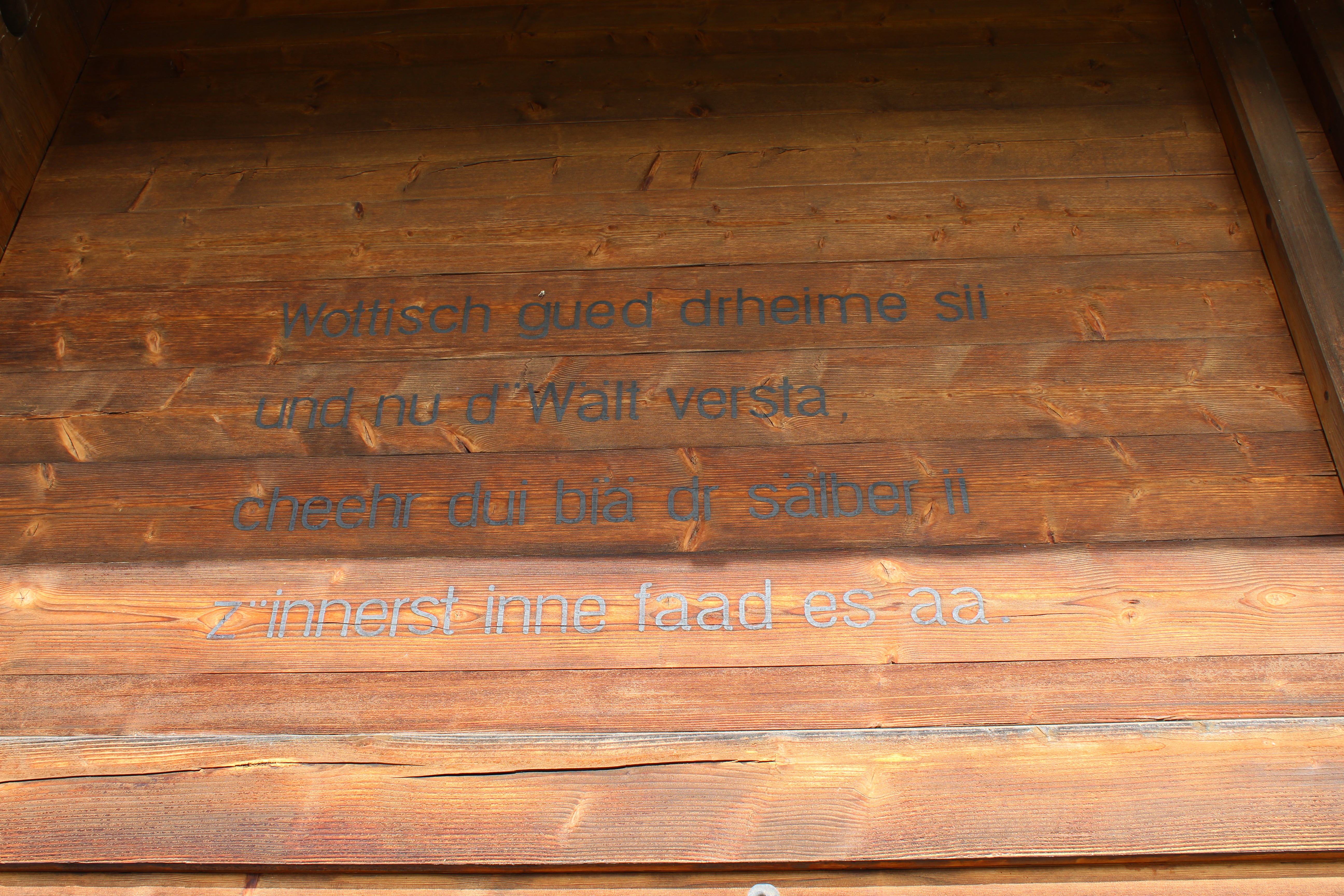 | Spruch | Wottisch gued drheime sii und nu d"Wält versta, cheehr dui biä dr sälber ii z"innerst inne faad es aa. |
