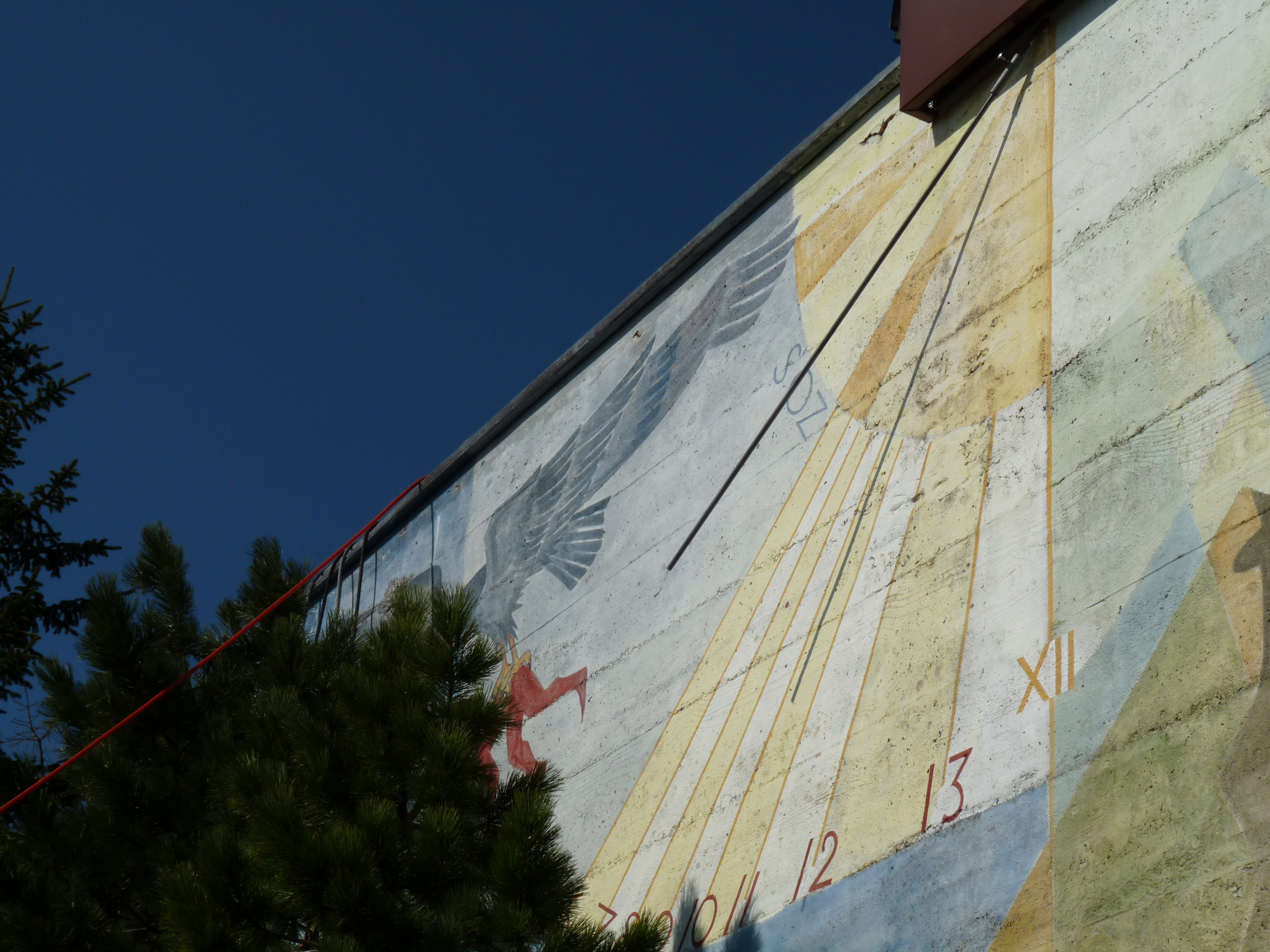Bemerkungen | Die Indikation der wahren Ortszeit des 30. Längengrades wurde sicher wegen des speziellen Ortes, der mit der Bahn nur im Sommer, wenn die Sommerzeit gilt, zugänglich ist, gewählt. Dass nicht die mittlere Zeit (mit Zeigleichungsschleifen) gewählt wurde, hat vermtulich gestalterische Gründe. Der Poller mit dem Bild wurden wegen des Neubaues der Cabriobahn abgebrochen. |